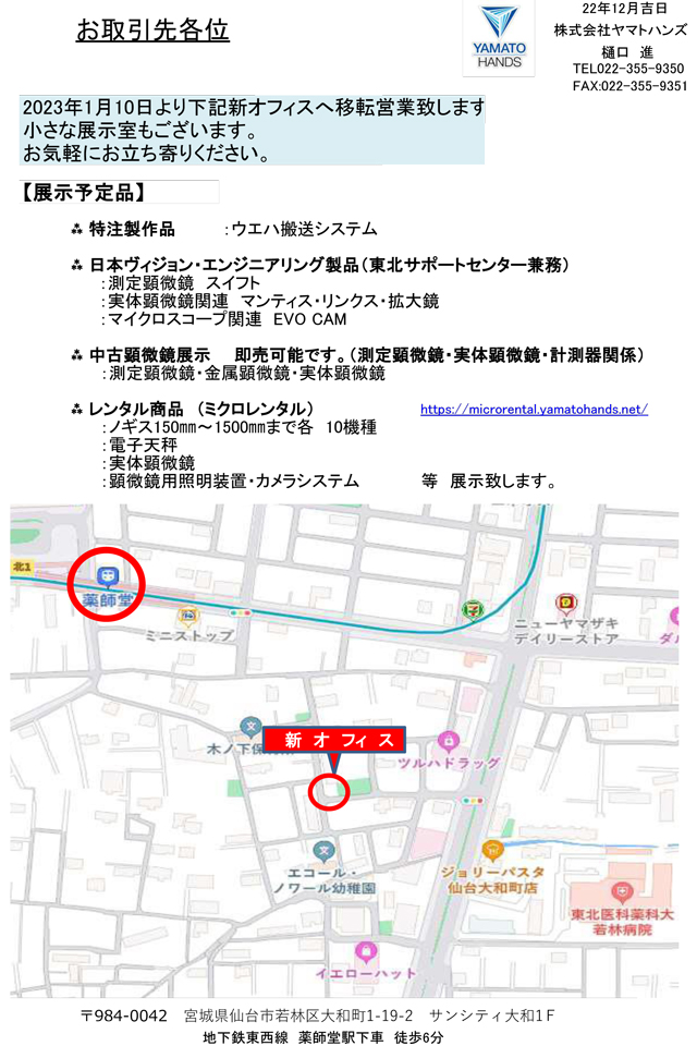 当社は宮城県仙台市若林区大和町にて、顕微鏡の販売・レンタル・修理、工場・オフィス環境装置の検査・分析トータルシステムのご提案をさせていただいております。